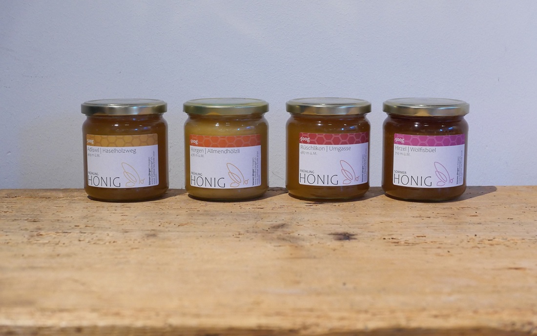 Der Honig stammt von den drei unterschiedlichen Standorten Horgen, Rüschlikon und Adliswil (Region Zimmerberg). Beim Standort Horgen liegt der Stand am Waldrand, die Bienen sammeln den Nektar insbesondere im Frühling in den nahegelgenen Obstkulturen. In Rüschlikon stammt der Nektar vor allem aus Obstkulturen und Laubbäumen. In Adliswil liegt der Standort am Waldrand, die Bienen sammelnd den Nektar von naheliegenden Wiesen und Waldflächen. Der Honig kann je nach Saison auch bereits Waldhonig enthalten, dadurch ist er dünkler und bleibt länger flüssig.