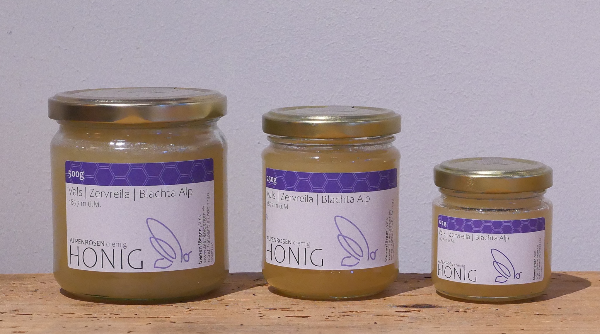 Dieser Honig wird von den Bienen im Juli / August auf ca. 1600 bis 2200 m ü.M. in einem abgelegenen Seitental von Vals gesammelt.